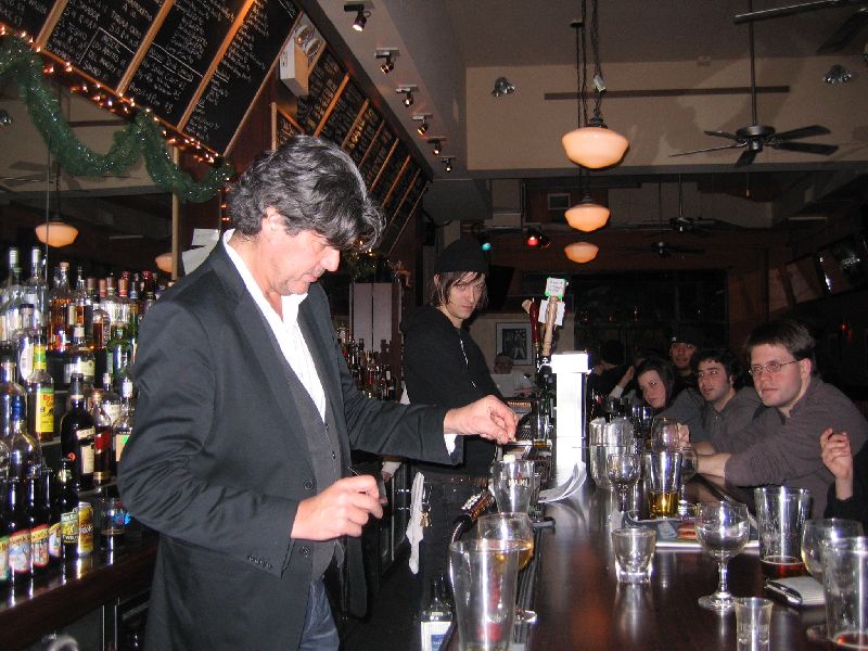 Ray sets fire to a glass of absinthe during 'Liquids of Interest'.